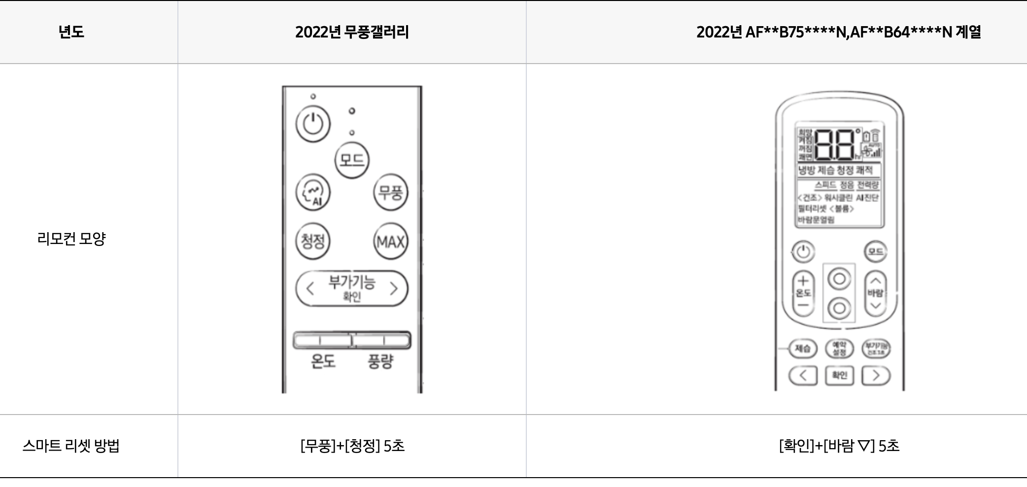 - 스마트 리셋 실행: 2012년 이후 리모컨에서 ‘확인 + 바람세기’ 5초 누름(모델별 상이) :contentReference[oaicite:10]{index=10}