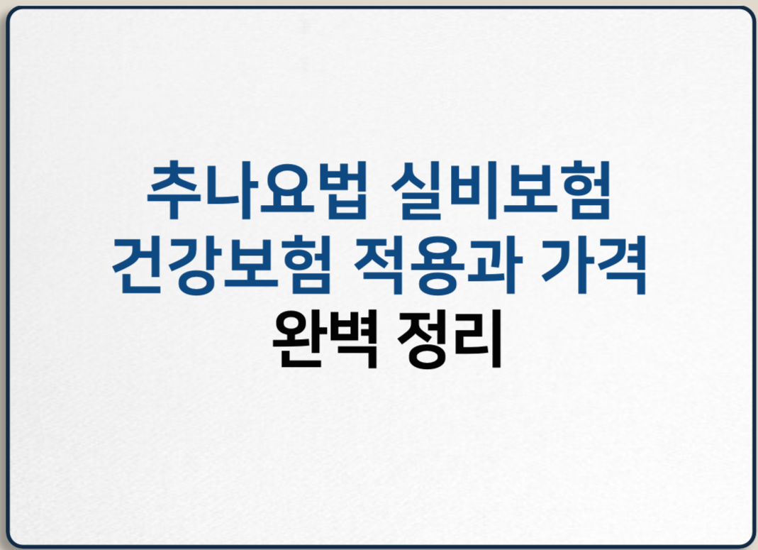 건강보험과 함께 실비보험도 적용 가능합니다. 추나요법이 건강보험 항목으로 포함되면서, 비급여 본인 부담금에 대한 환급이 가능해졌습니다.